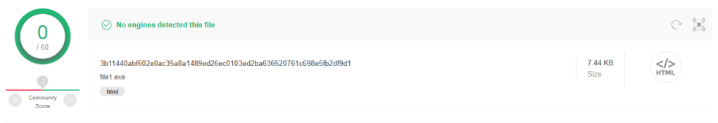 PowerShell script download an executable file file1.exe from the URL. After taking closer look at this file, its a html page with .exe extension.