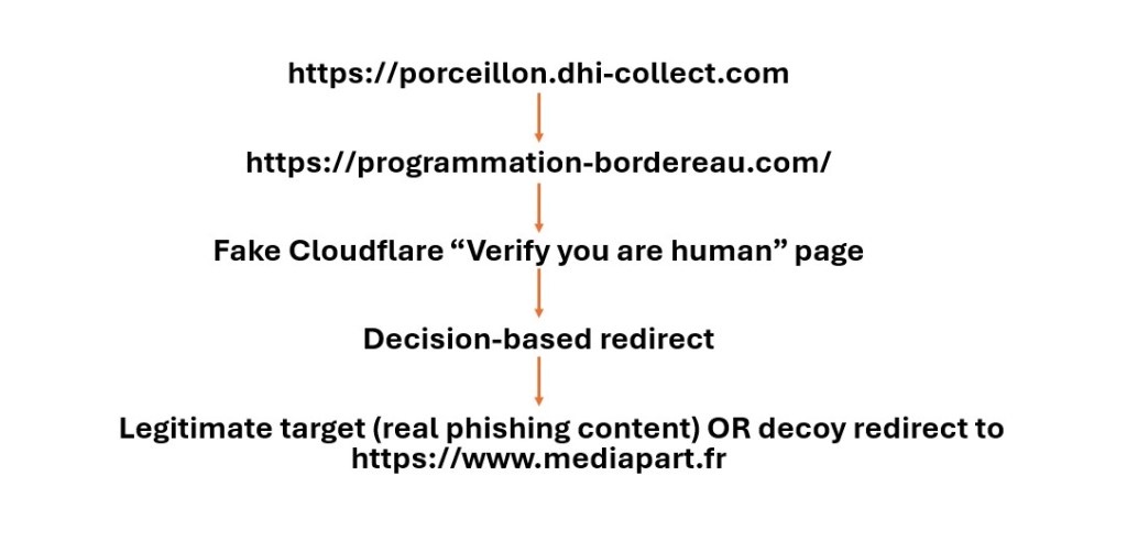 This step serves multiple purposes. It filters automated scanners, delays analysis, and reinforces the illusion of legitimacy. This behavior closely matches what is commonly seen in Traffic Distribution Systems (TDS) used by modern phishing operations.