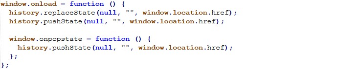 The page manipulates history to make the back button ineffective an especially effective trap for non-technical users who instinctively try “Back” to escape.