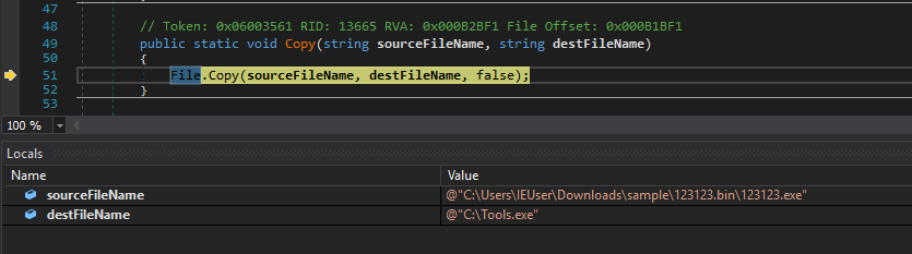On proceed with the debugging, it drops an executable file svchost.exe on the system at location