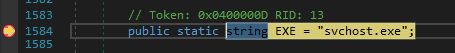 EXE is a string variable initialized as svchost.exe. It could be named svchost.exe (Windows Service Host) to create