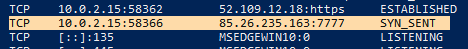 svchost.exe has sent TCP segment with SYN control bits to C2 server but there is no response from the server. Though